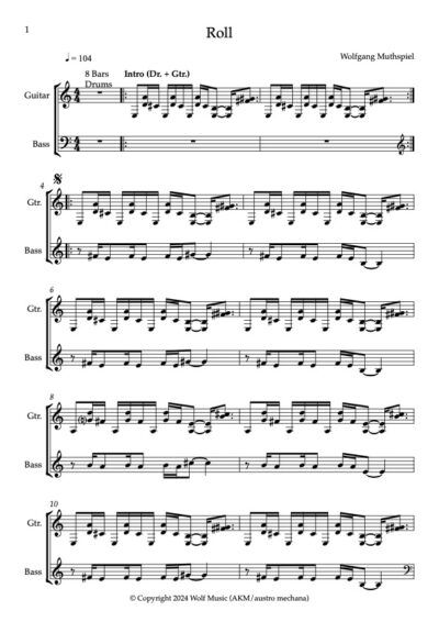 Roll Tokyo €15.00 inkl MwSt. Quantity Add to cart score and parts (Guitar, Bass) released 2025 on ECM published by Wolf Music